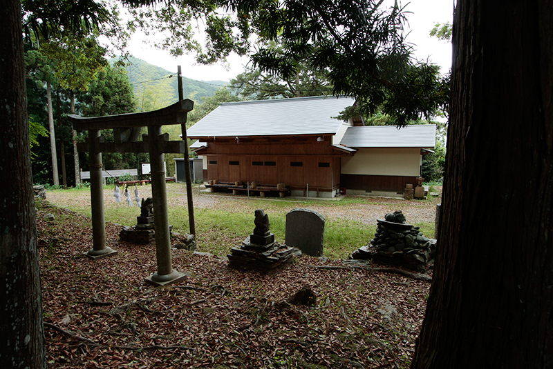祖谷トンネルの手前を右に入り、山道を10分ほど上がる。周囲に人家がほとんど無い物静かな境内に比較的新しい舞台が佇む。